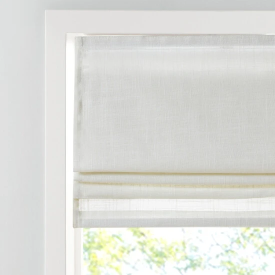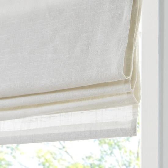 Casual and stylish, the Madison Park Suvi Linen Blend Light Filtering Roman Shade is an easy addition to freshen up any space. This roman shade features a beautifully textured linen blend fabric in a soft tone creating a natural look and feel, while the lightweight fabric lets the right amount of light into your home for a bright, yet soft and airy touch. The cordless retraction mechanism makes it easy to open and close the window shade throughout the day, while the detachable fabric face allows for easier assembly and cleaning by lightly shaking or dusting. Though detachable from the hook and loop fastener, the top face fabric is NOT fully removable. Ready to install right out of the packaging, this roman shade can be hung inside or above the window panel allowing you to find the perfect fit for your home decor. Each shade is also OEKO-TEX certified, meaning it does not contain any harmful substances or chemicals to ensure quality comfort and wellness. Shade measures 64-inches in length and comes in 5 width options to suit multiple standard window sizes; each roman shade is sold as a single and comes with a printed instructional guide as well as an instructional video available on site. Assembly is required. Complete the look with coordinating window panel pairs, available and sold separately.