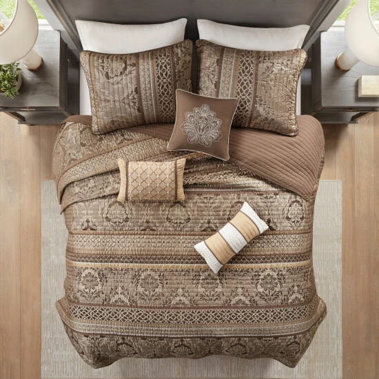 Explore nuanced patterns that call traditional design to mind with this six-piece coverlet set. Polyester microfiber material keeps this coverlet set lightweight and resilient, so that it caresses and insulates without suffocating you. The set includes a coverlet, shams, and pillows to fulfill your bedding requirements in one go.