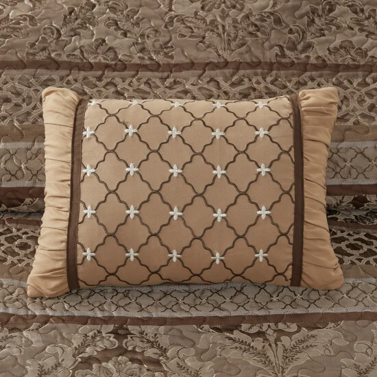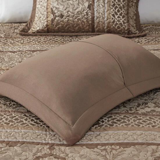 Create an aura of elegance in your bedroom with this Madison Park Venetian bedspread set. Intricate brown-and-gold patterns set a sophisticated tone, and the included shams and pillows help create a cohesive look. The pieces in this set are machine washable for convenient care.