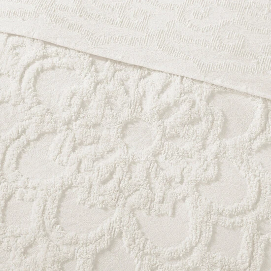 Complete your boho aesthetic with the Virginia coverlet set from Madison Park. The cotton set is tufted with chenille to create a medallion design, while fringe trim adds timeless charm. Choose from three sizes and four colors to complement your laid-back decor.