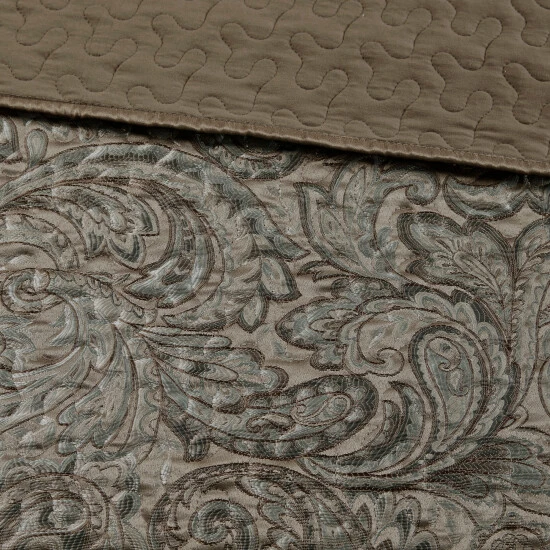 Give your bedroom a classic update with the Madison Park Whitman 5-Piece Reversible Jacquard Bed Cover Set. Inspired by an updated paisley pattern. The jacquard weave adds a touch of sheen to your bedding. Quilted bedspreads and bedspreads offer beautiful detailing. Two decorative pillows feature pleats and embroidered details that coordinate with the head of the bed, bringing the whole look together.