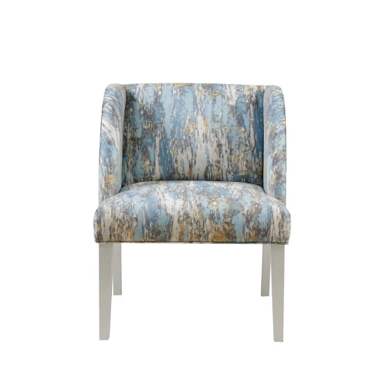 The Madison Park Zuma Accent Chair offers a charming and versatile update to your living room. This lounge chair is upholstered in a blue and grey abstract print fabric with a silver finish on the solid wood legs, for a chic transitional look. The flared arms and distinct back style create a uniquely elegant silhouette that complements and elevates your home decor. Leg assembly is required.Β